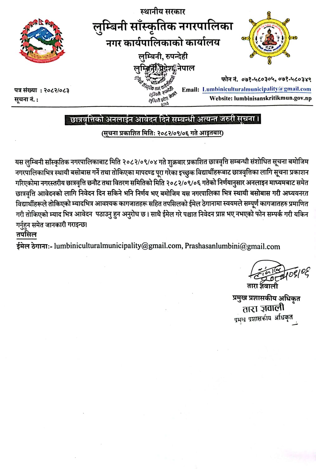ईमेल मार्फत छात्रवृत्तिको आवेदन दिने सम्बन्धी सूचना ।