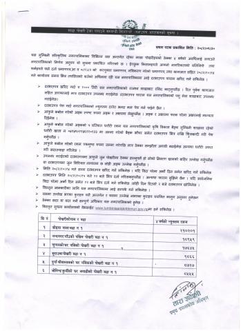 माछा पोखरी ठेक्का लगाउने सम्बन्धी शिलबन्दी दरभाउपत्र आव्हानको सूचना ।
