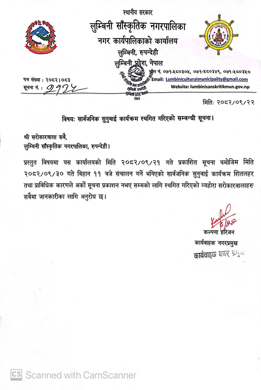 सार्वजनिक सुनुवाइ कार्यक्रम स्थगित गरिएको सम्बन्धी सूचना।