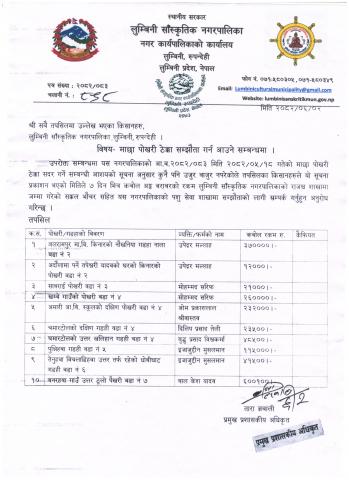लुम्बिनी सांस्कृतिक नगरपालिकाको सम्पूर्ण कर तथा दस्तुर हेर्नको लागि रातो किताबको पेज न. १३३ देखि १४९ मा जानु होला